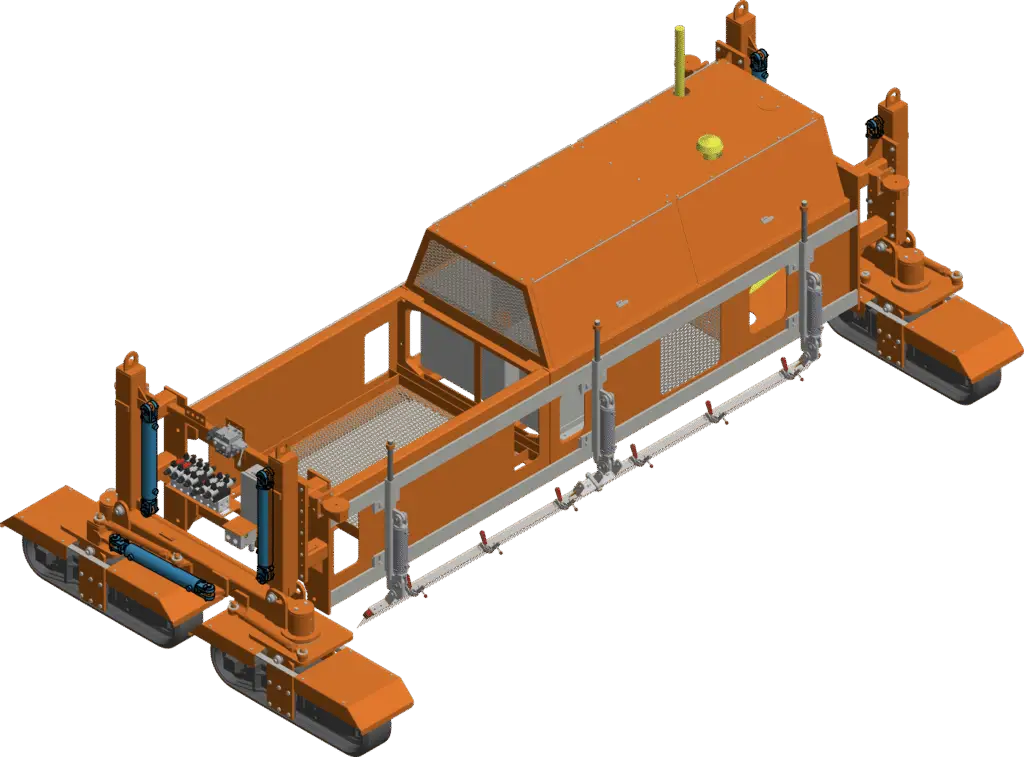 Engineered with three independent cylinders—left, right, and a dedicated center crown cylinder—the system clamps securely onto the TM-4’s T Rail Clamp System. These cylinders can be located easily without requiring any changes to the machine’s main frame, giving contractors flexibility and faster setup on the job.